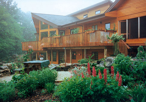 A true classic, the Kensington post and beam home design offers a magnificent great room with vaulted ceiling. It has the space to showcase a double-sided fireplace.