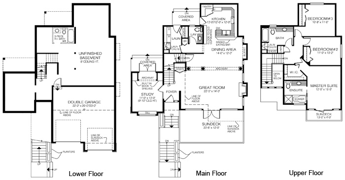 With its front porches, the Montview is ideal for a rear-sloping lot with a front view. Built over an unfinished basement and a recessed garage, it includes a large entertaining and family area.