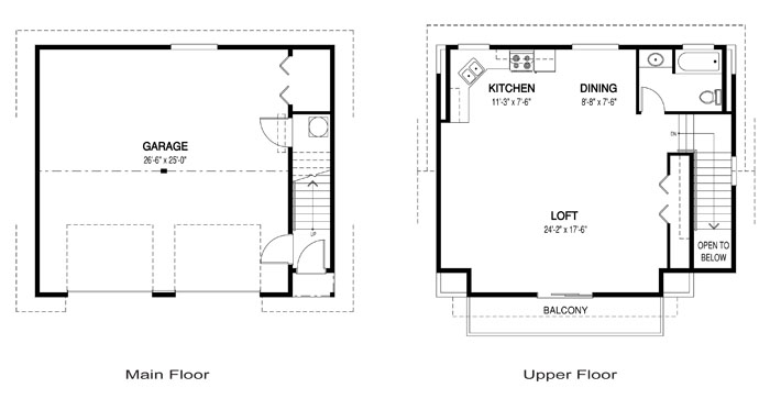 At 710 sq. ft., this Linwood package makes the ideal garage, with added studio or guest space on the upper floor.