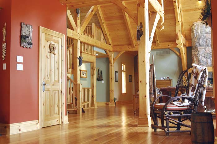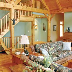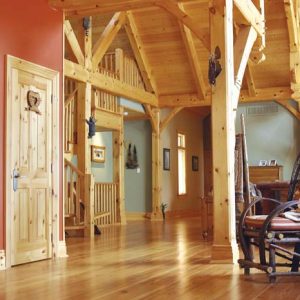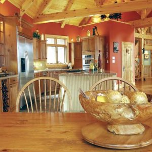 House plans the Centennial with a spacious great room, spectacular hammer beam truss, and amazing views from a comfortable place for relaxing. Another great feature of the Centennial custom cedar home is the grand, octagonal sun-room.