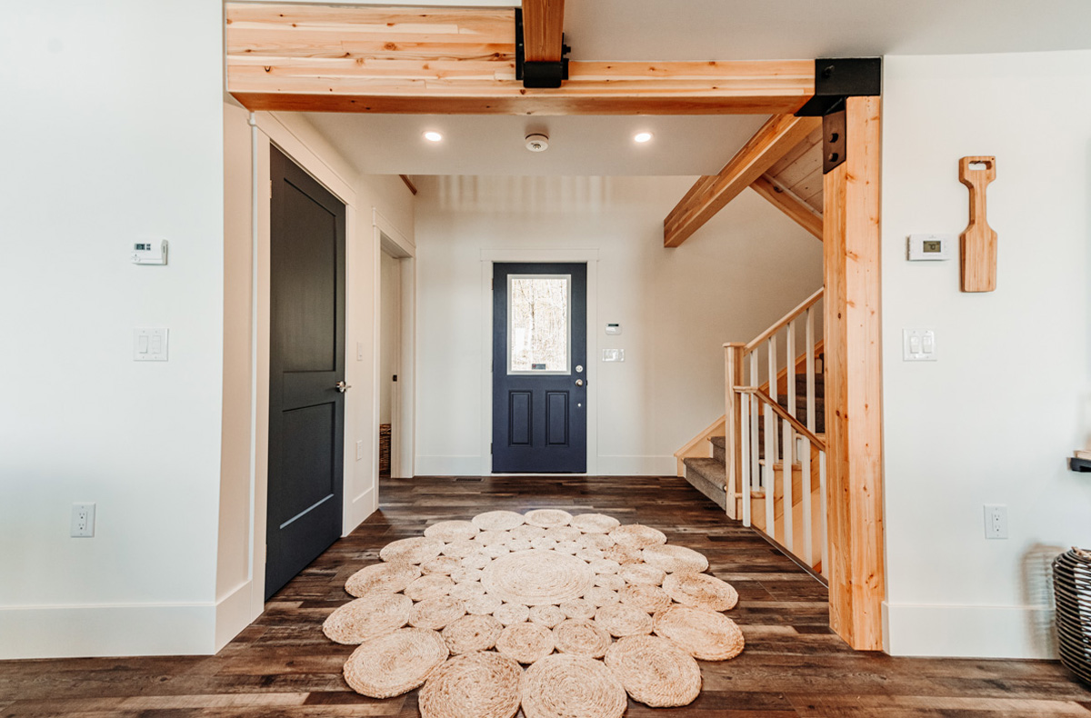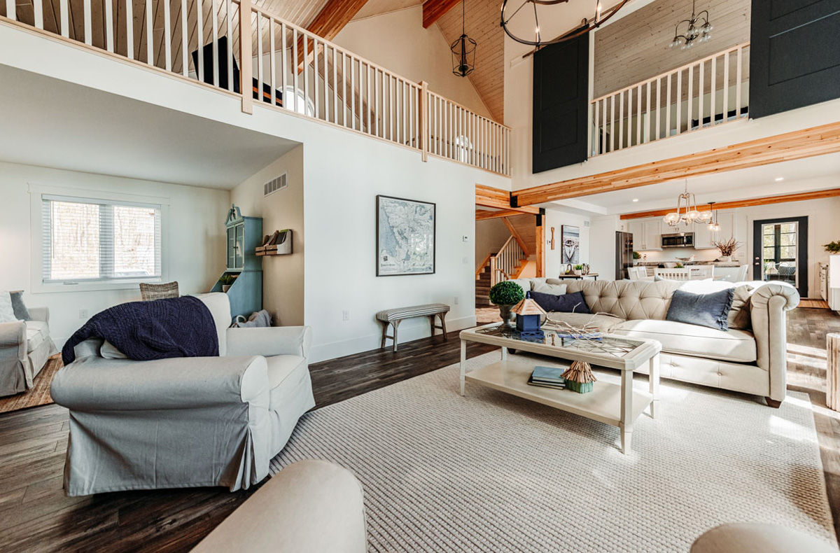 The Halls Glen is a cozy cottage retreat. This design is a modified version of our Bryson Bay custom model. It takes on the stunning post and beam accents and has a similar exterior design. It's an example of one of the best, post and beam home packages on the market.