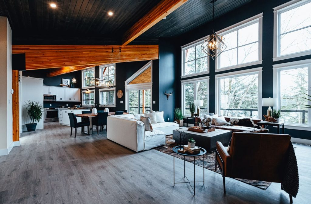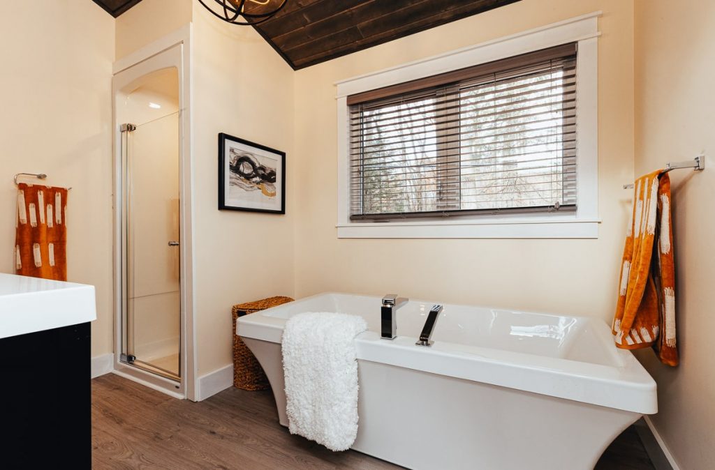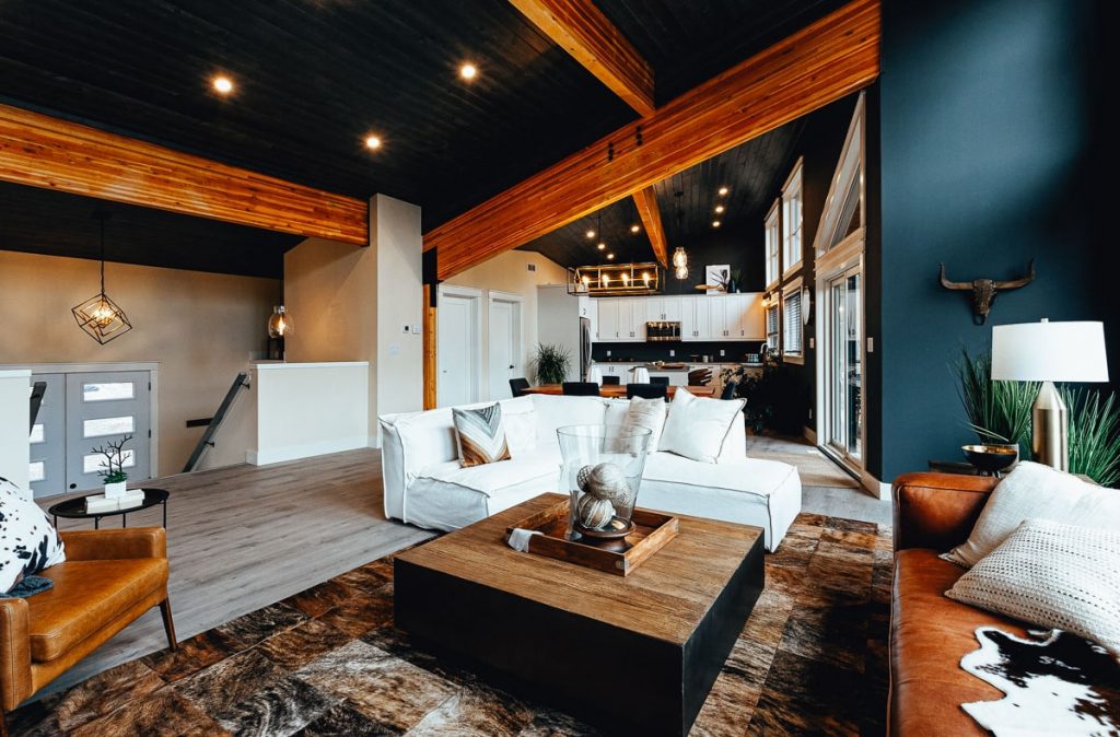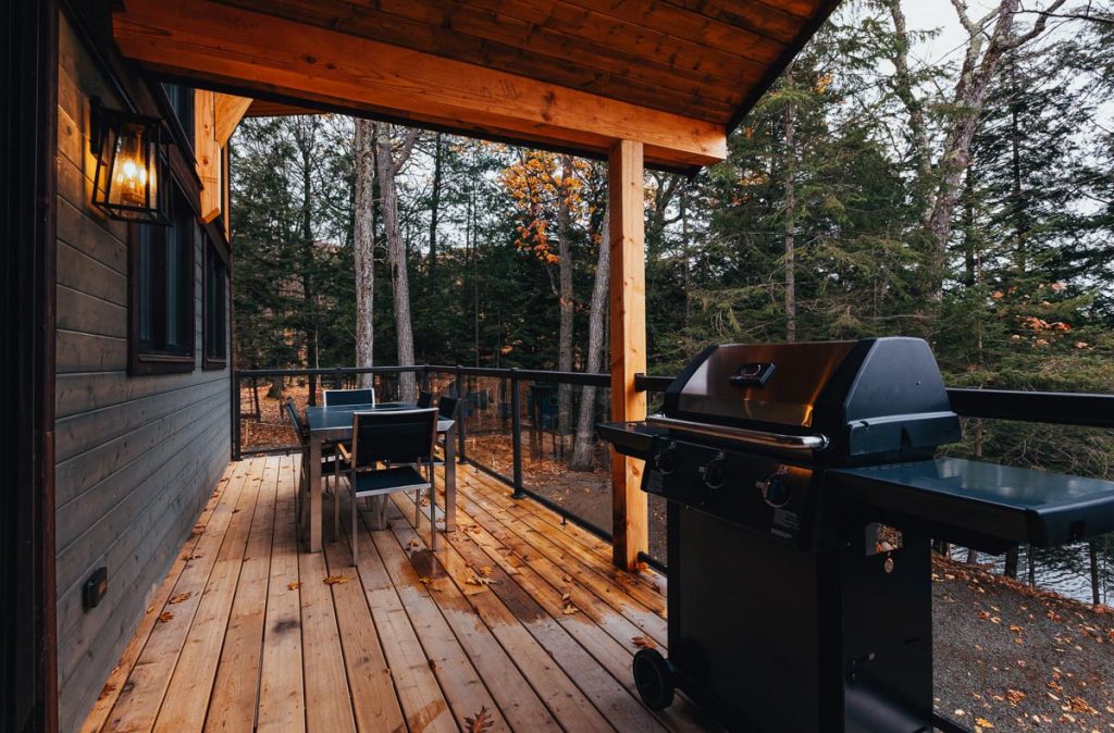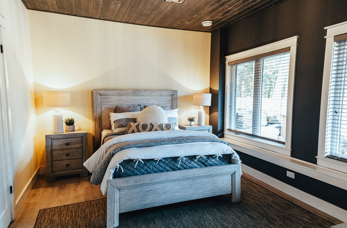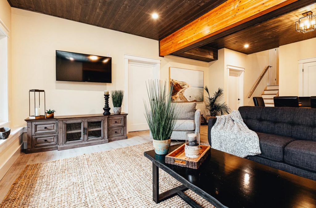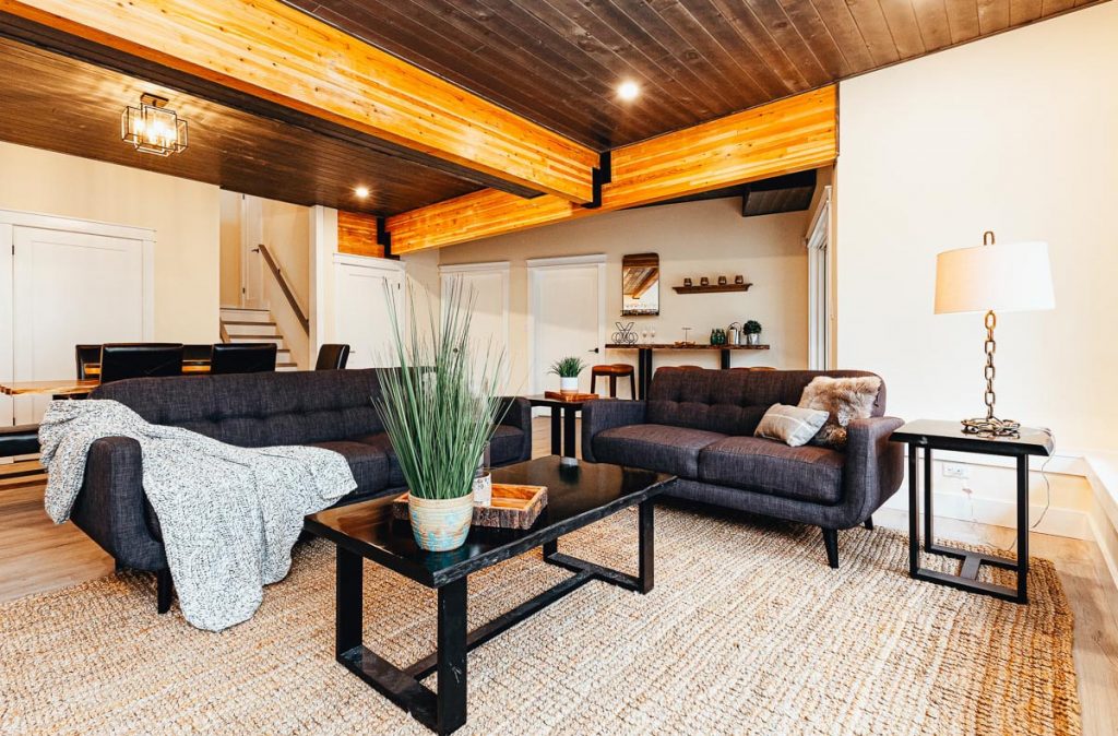 The Newboro 2 post and beam is a modern two-level 3,160-square foot home with three bedrooms, three bathrooms, a full kitchen, and a spacious family room on the lower level and a spacious great room on the main level.