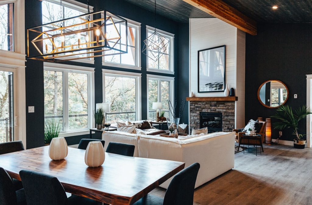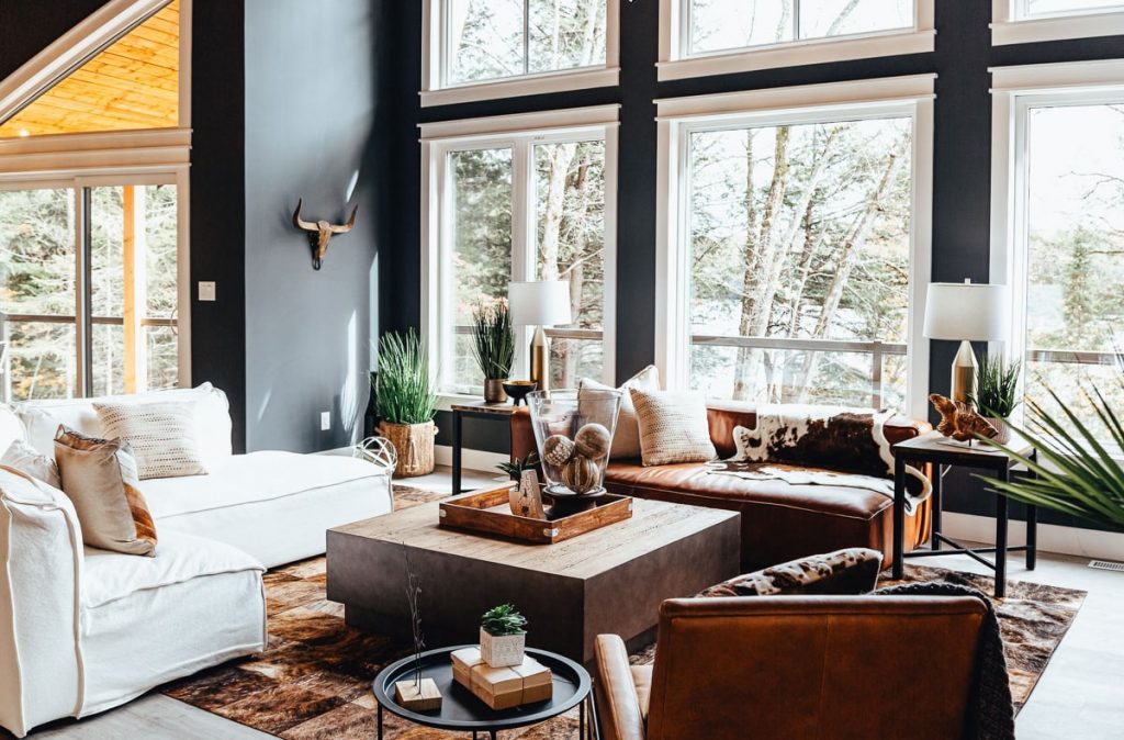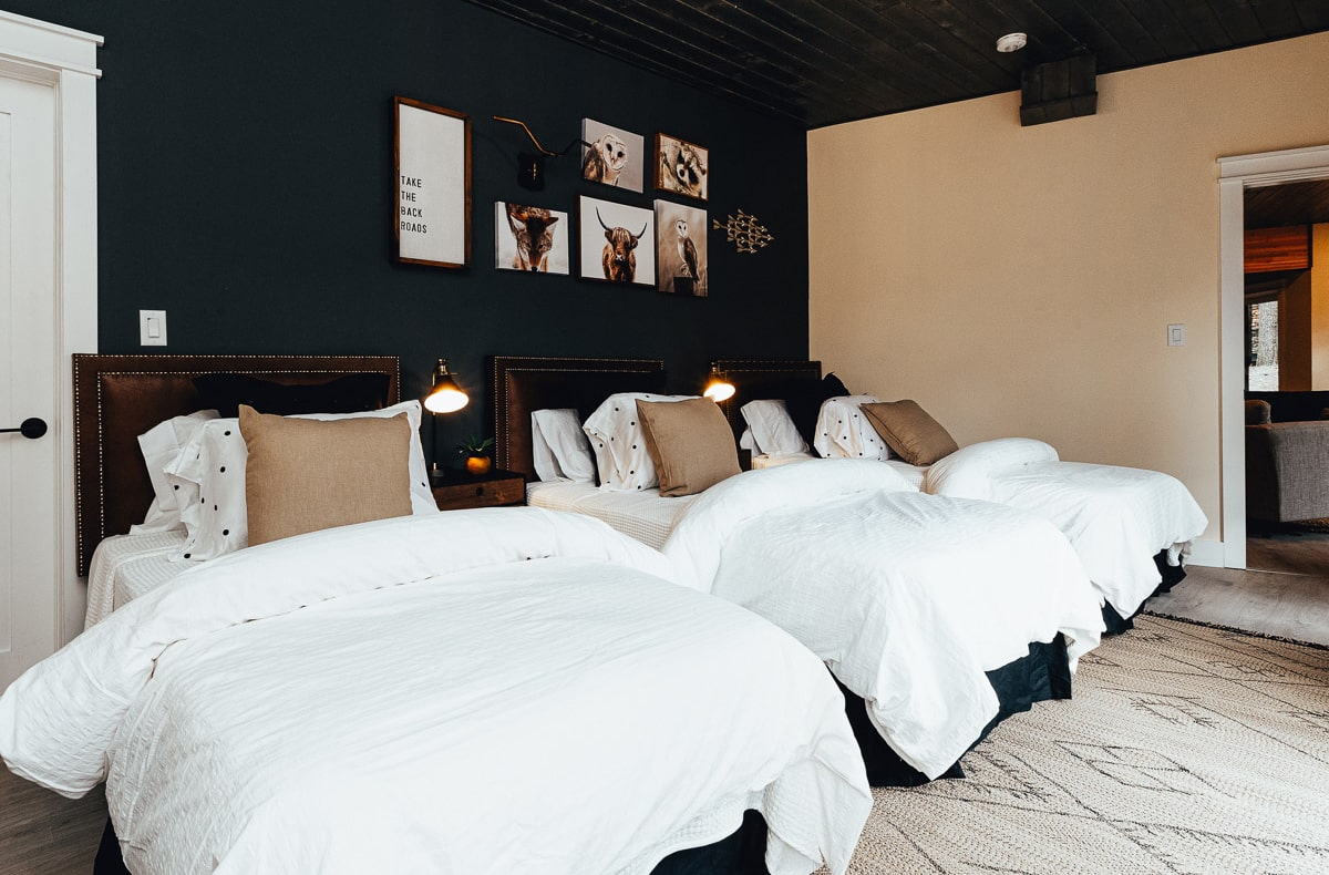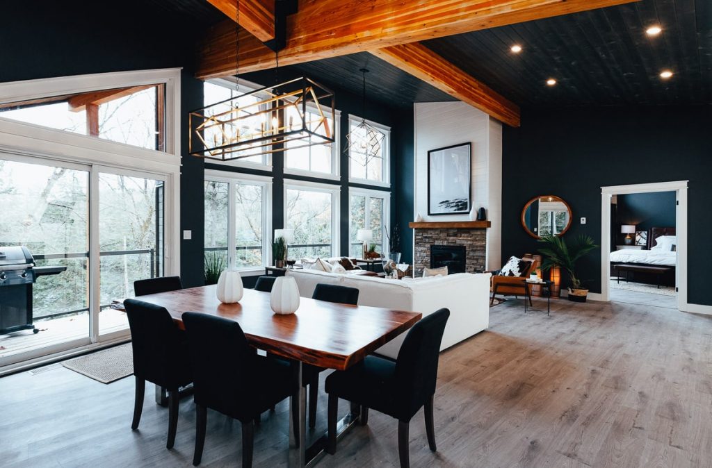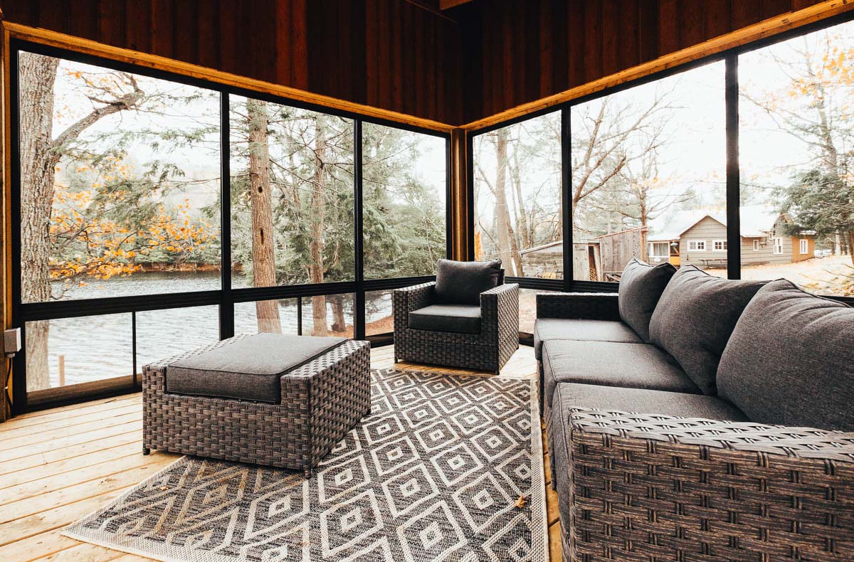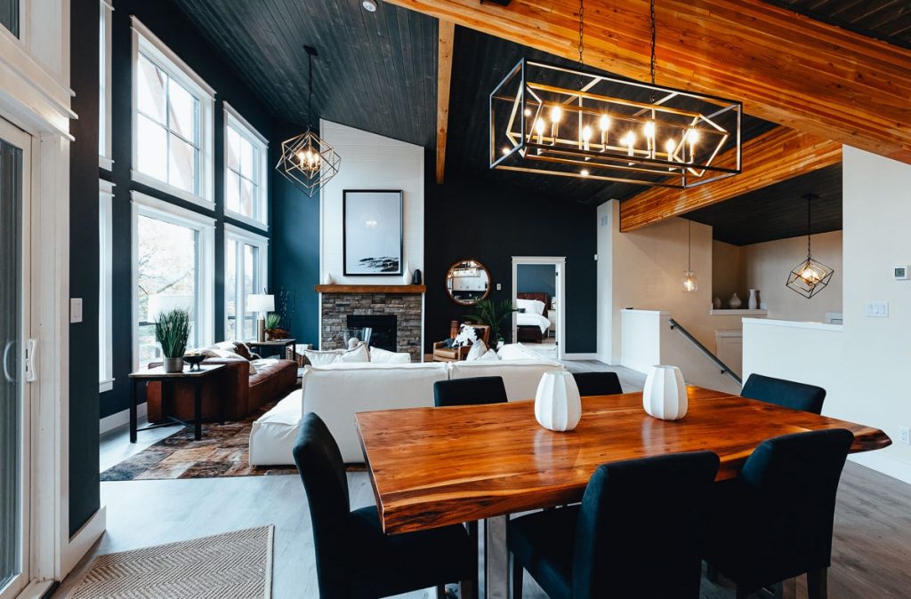 The Newboro 2 post and beam is a modern two-level 3,160-square foot home with three bedrooms, three bathrooms, a full kitchen, and a spacious family room on the lower level and a spacious great room on the main level.