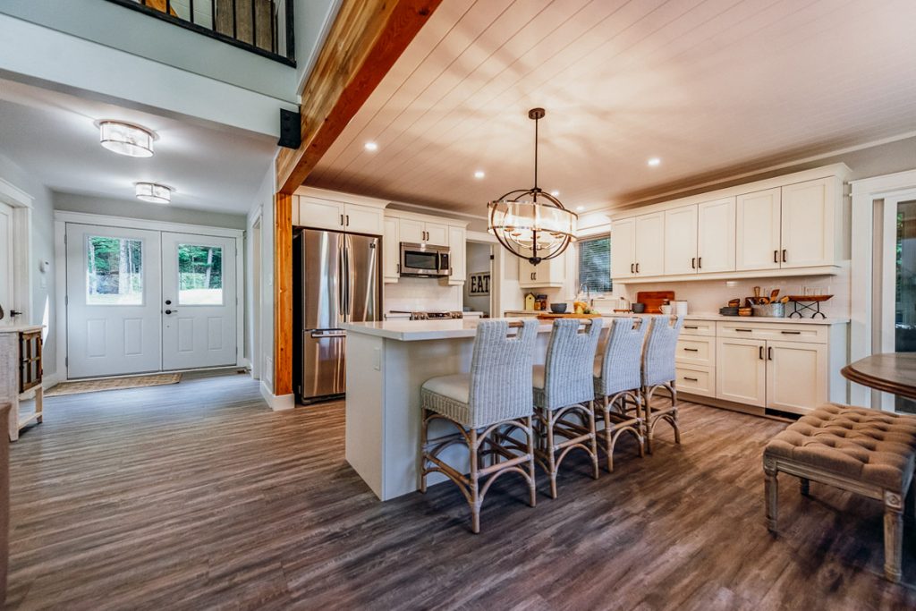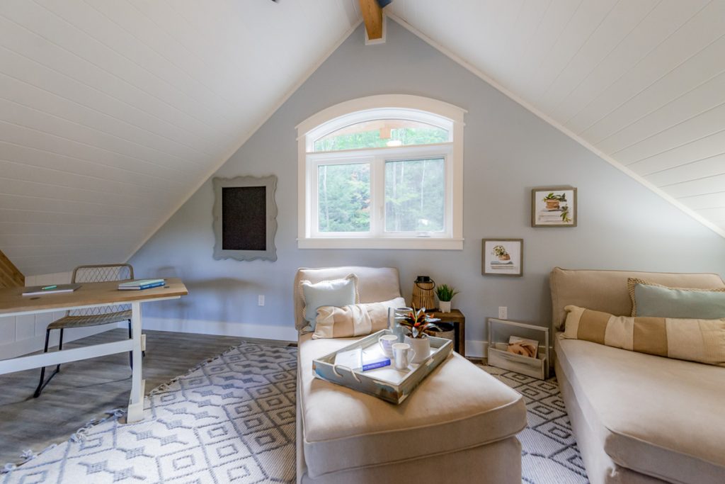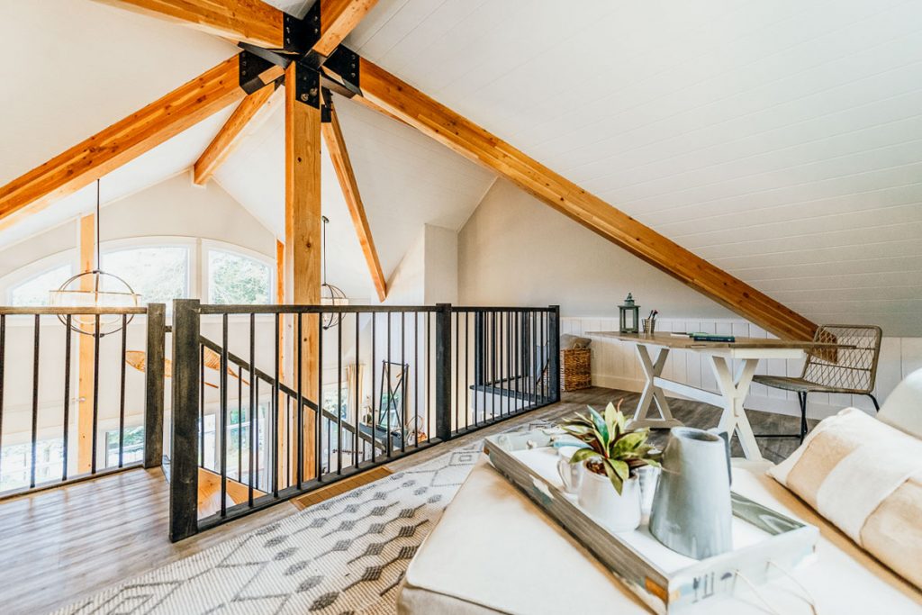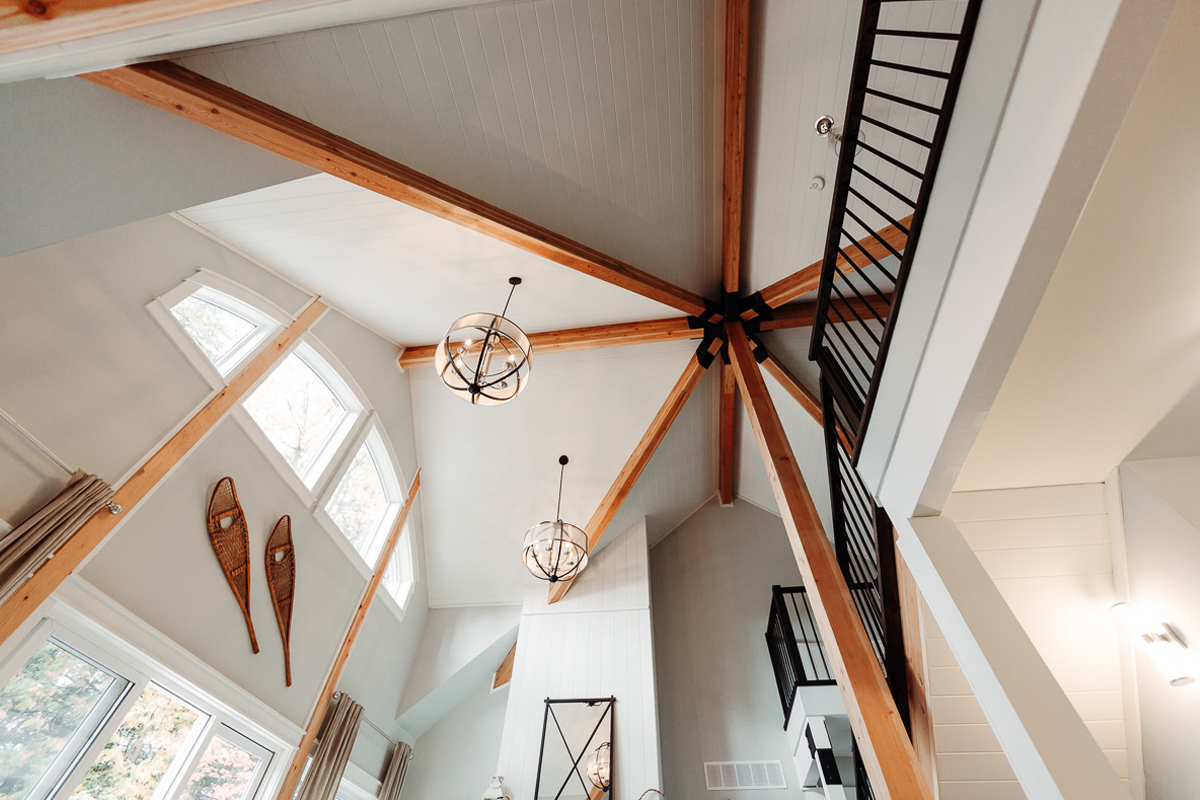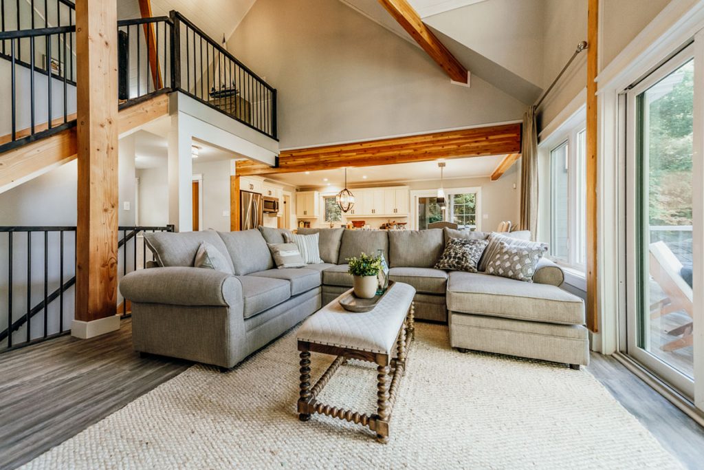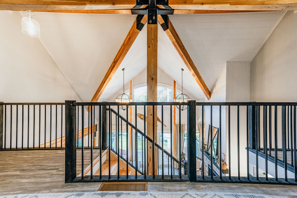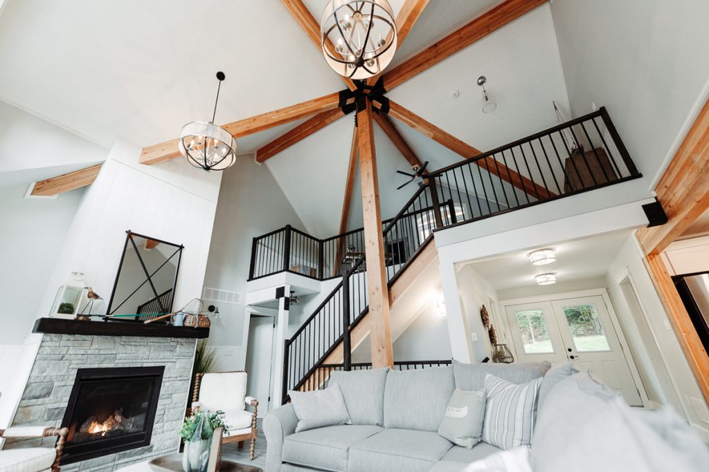 The Red Leaves 2 is a post and beam home design. The family room is flawlessly designed to accentuate the rooms natural beauty with a stone fireplace, multiple beam vaulted ceilings and natural hardwood floors. The breathtaking cathedral ceilings and floor-to-ceiling windows are simply spectacular. As you look up, you’ll see the charming second-story loft.