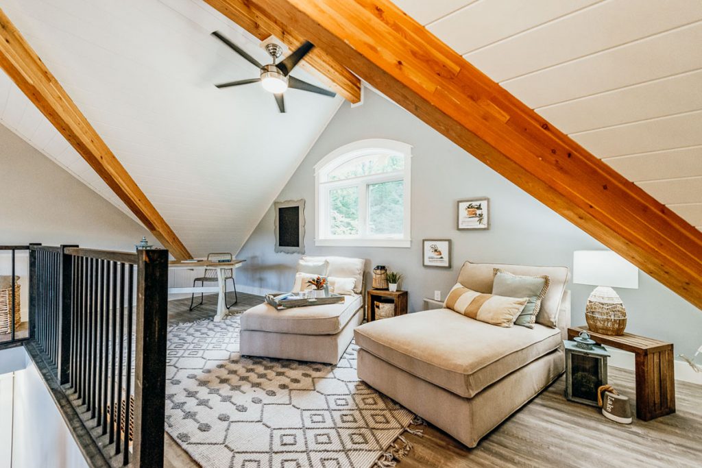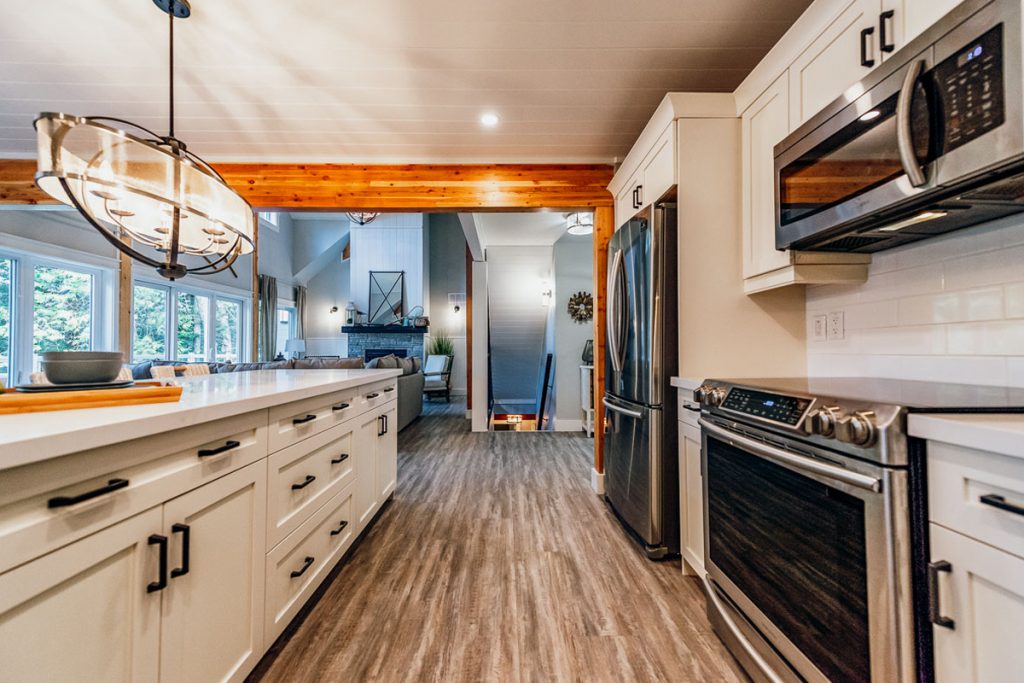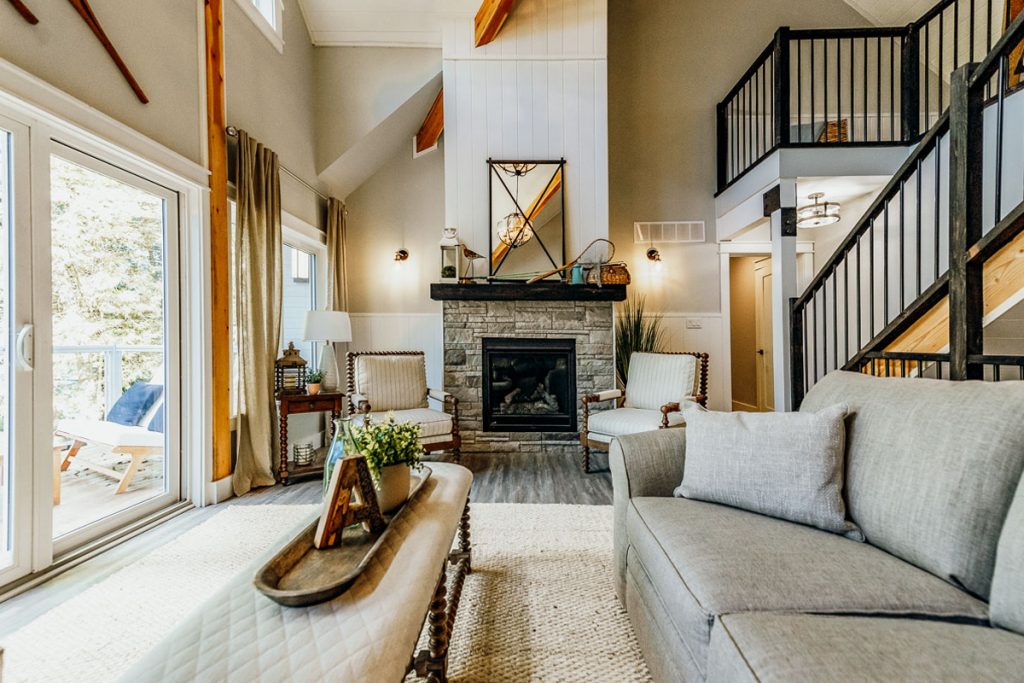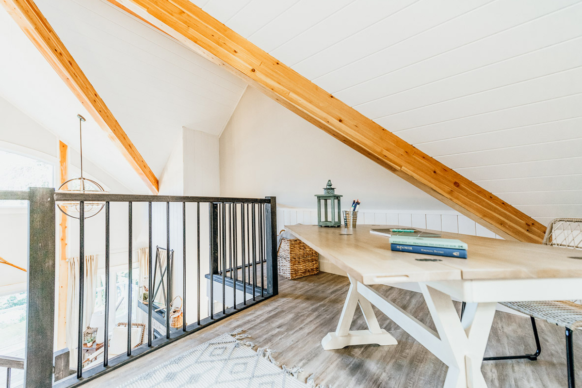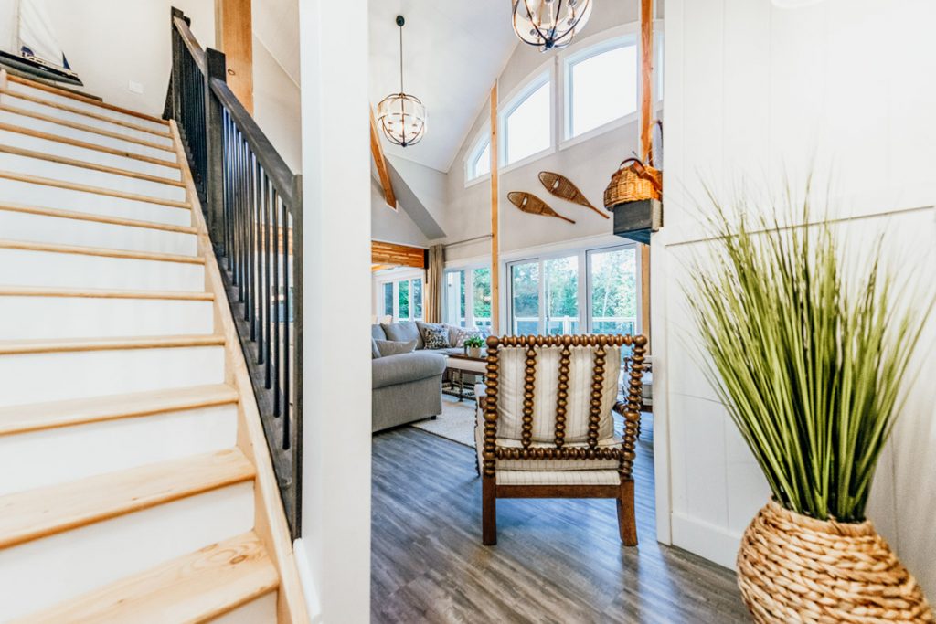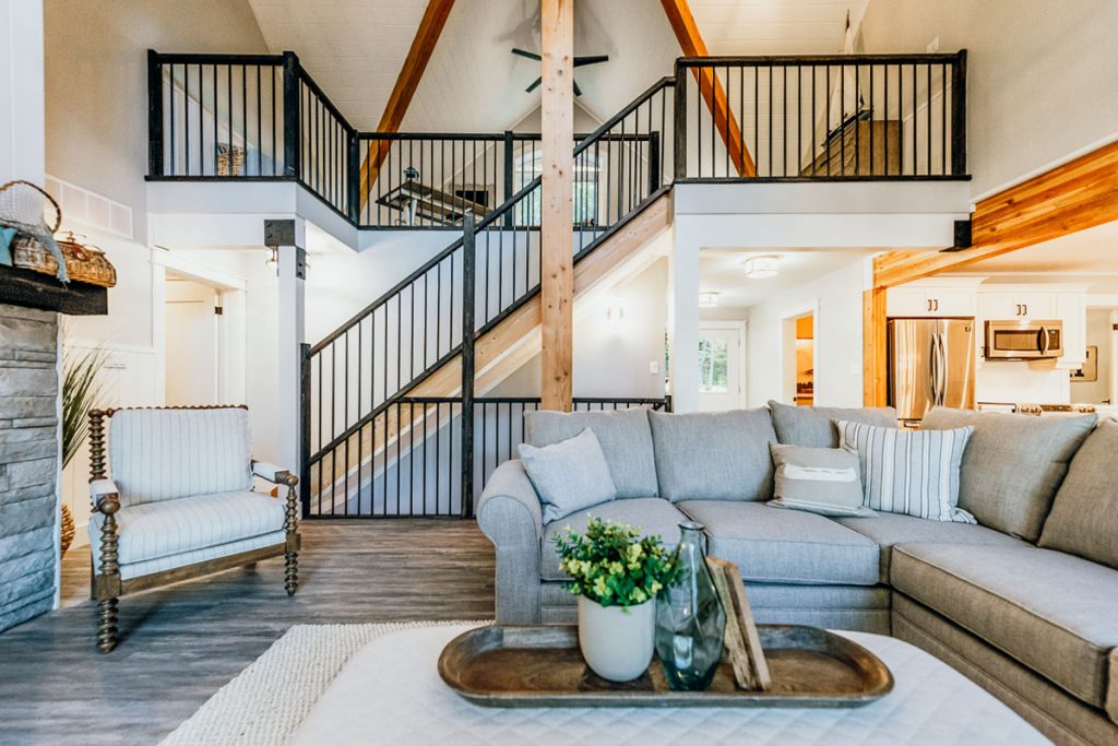 The Red Leaves 2 is a post and beam home design. The family room is flawlessly designed to accentuate the rooms natural beauty with a stone fireplace, multiple beam vaulted ceilings and natural hardwood floors. The breathtaking cathedral ceilings and floor-to-ceiling windows are simply spectacular. As you look up, you’ll see the charming second-story loft.