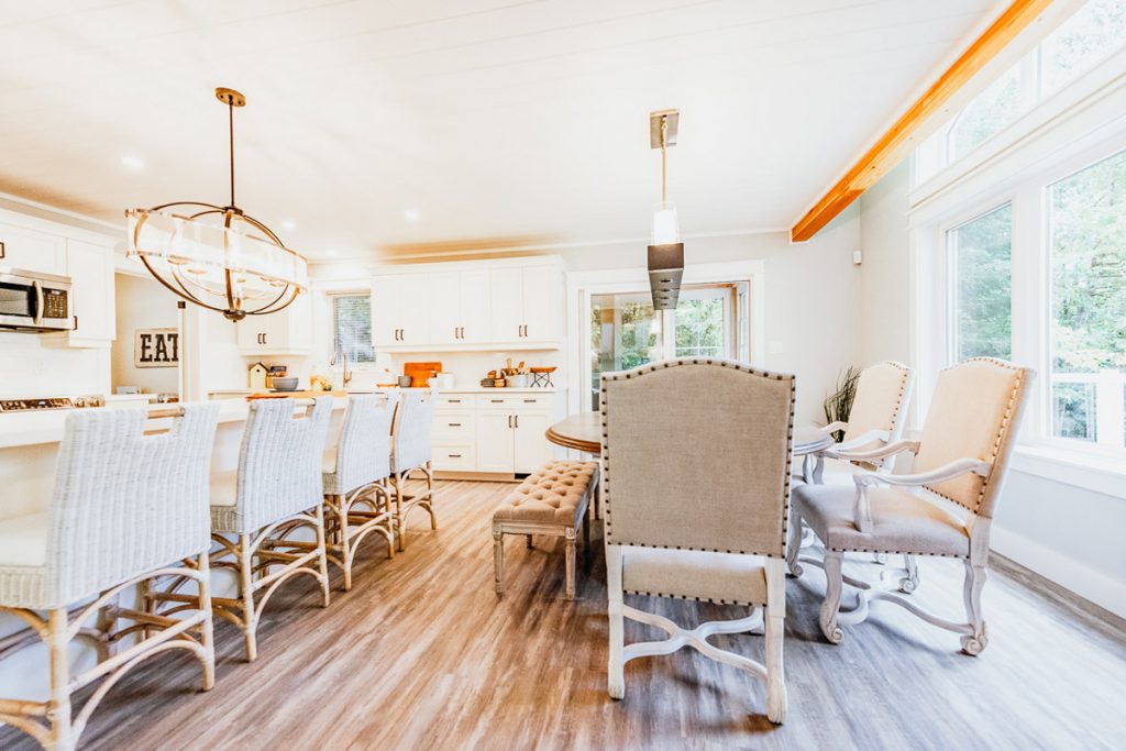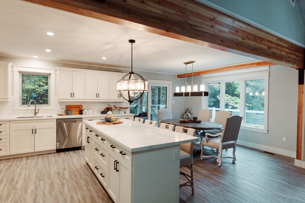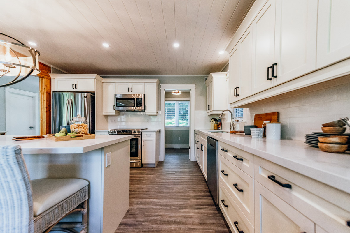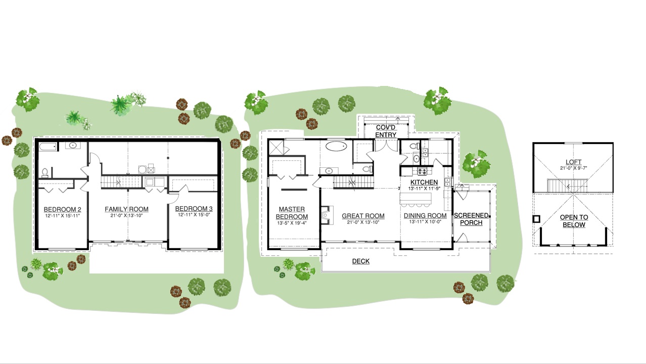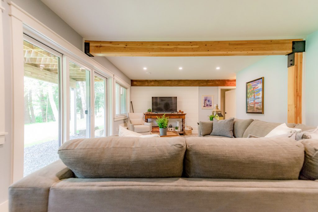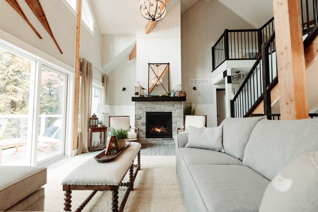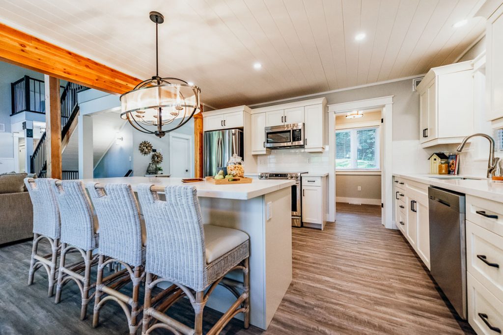 The Red Leaves 2 is a post and beam home design. The family room is flawlessly designed to accentuate the rooms natural beauty with a stone fireplace, multiple beam vaulted ceilings and natural hardwood floors. The breathtaking cathedral ceilings and floor-to-ceiling windows are simply spectacular. As you look up, you’ll see the charming second-story loft.